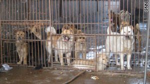 Eating dogs and cats in other places in China are common practise, as we all know. Dog restaurants are nothing new in Beijing. Also for Guangzhou, a southern city, it's still popular. This photo from CNN World shows a pet-farm-look alike scene actually taken place in a meat market: dogs bark and whine behind high chain-link fences, some of them gnawing the wire so hard they bleed at the mouths while cats packed into crowded cages cower in fear if anyone approaches. It's really heartbreaking for a lot of people like us who never just once want to taste the poor animals' meat but rather thinking of them as our loyal and loving pets !
